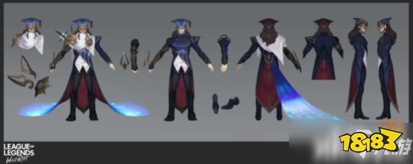 在最终呈现的星域18183皮肤中,我们推翻了早期较为单一的色调搭配方案。最终确定采用深蓝色作为燕尾服的色彩,因为深蓝色象征着夜空,更为直观的凸显出“星域”这一主题。