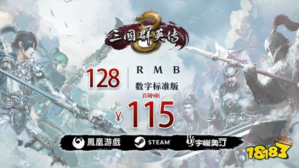 游戏发售的第一周还有限时优惠活动。玩家在发售的首周购买游戏可享受9折优惠,仅需115元即可购得《三国群英传8》数字标准版。