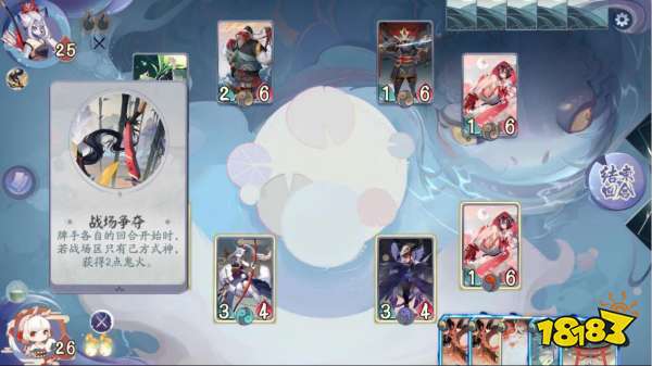 对阵思路敌方牌手拥有25点生命值,虽然坦度有所提高,但是我们依旧可以使用快攻打法快速结束战斗,不给对方式神成长的机会。因为姑获鸟在攻击之后会返回准备区,被敌方牌手被动技能所克制,所以我们尽量不要让姑获鸟最后一个进攻,姑获鸟可以先发起进攻,然后再派遣其他式神进入战斗区站场。