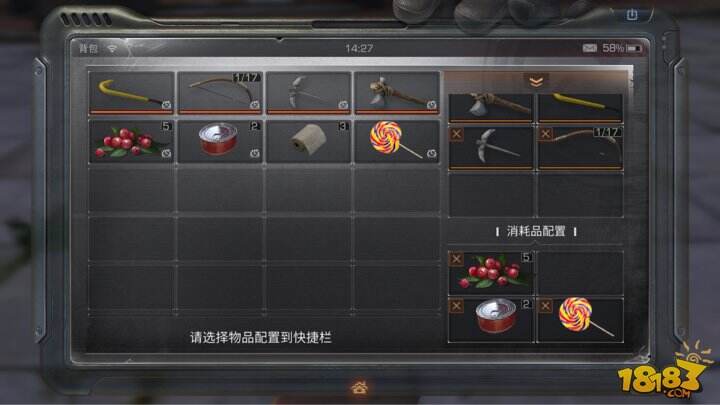 进入快捷栏配置后我们可以看到在下方的消耗品配置内是没有绷带的。那么我们就可以把绷带添加到快捷栏。