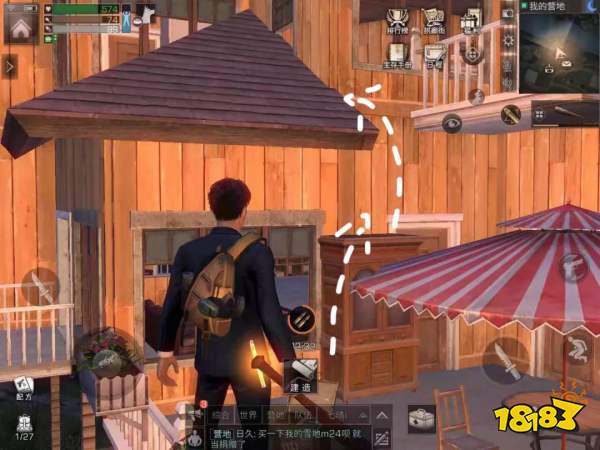 如果是在家具较少的情况下,也可以活用自己手上的装备,比如把弹药箱放到地上,依次跳跃至弹药箱-酒柜-屋顶上,最后登上4楼休闲室。