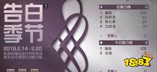 情人节期间,将根据魅力值设置魅力榜,每日魅力榜排名前列的幸存者,将会获得限时称号和对应奖励。