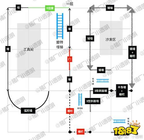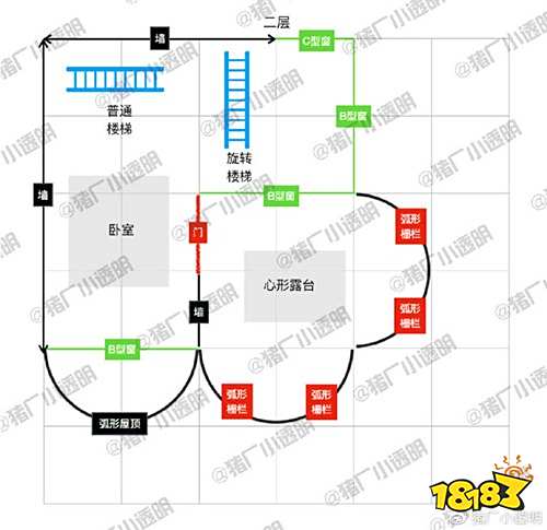 所需材料一览 23个半身墙 22个墙壁 16个栅栏 16个矮墙 15个B型窗 7个3型斜面墙 4个门 4个3型屋顶 4个3型外凸角 4个弧形栅栏 3个A型窗 3个矮楼梯 2个C型窗 2个普通楼梯 2个弧形墙壁 2个弧形屋顶 1个旋转楼梯 多个地板房子也打了地基,而且用的是半身墙,所以空间较大,可以承担地下室的储物功能。容纳几十个矮木柜不成问题。说起来矮木柜真是好用,又省材料占地面积又小,祝你们都一发入魂抽到柜子。