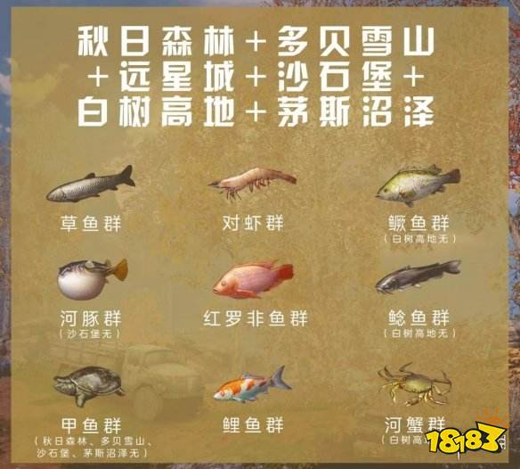 除了特定鱼群外,以上地图水域均能生成混合鱼群,还有几率钓取各类鱼王哟。