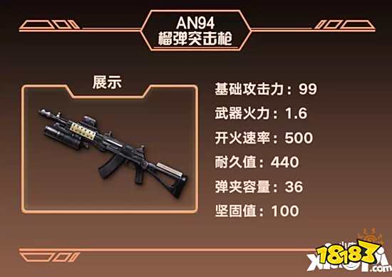 与A2榴弹突击枪相比,AN94的火力值高出了0.1,并且攻击力上升了16点,在战斗中可以打出更高的伤害量。
