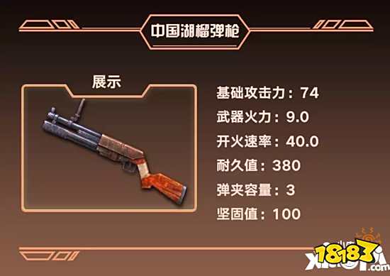 中国湖榴弹枪的火力值高达9.0,比土制火炮要高出1.0,并且作为榴弹炮专用武器,它的弹夹可以储存3颗榴弹,这意味着它能够持续发射榴弹,另外,由于中国湖榴弹枪的榴弹,仅能落地后爆炸,所以更适合在近距离作战。