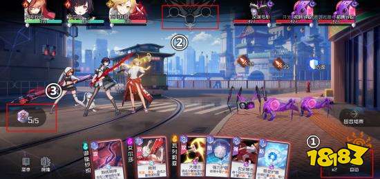 ② 能量槽,满三之后就会有一张角色大招,触发条件就是用同一个人物3张,会触发一次额外的技能