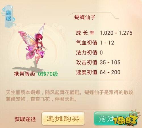 蝴蝶在属性方面明显处于劣势,不过由于其携带等级低,可以从小入手。