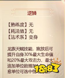 当可以触发逆鳞时该标志会发光,点击就可以触发逆鳞效果,逆鳞不需要耗费法量而且可以无视化无的存在,逆鳞持续时间为两回合,两回合过后逆鳞进入冷却时间,冷却时间为四回合。