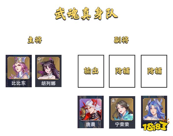 第一个配置思路是以拥有武魂真身的魂师作为主将,同时配上1个输出+2个防辅魂师的配置,这个阵容的好处在于武魂真身类魂师可以开场直接放真身,例如比比东的真身可以限制对方群体的魂力,胡列娜的真身则可以让胡列娜具有持续【混乱】对方的能力,但这个组队思路必须要求的控制系魂师具备不俗的练度,而这部分练度不够的朋友则不要轻易尝试,昨天维一便已经吃够教训了。