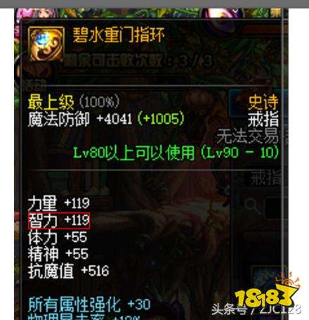 史诗戒指可以选择90级的散装史诗重门戒指119的智力还是可以的~对于深渊玩家还是可以考虑一下~