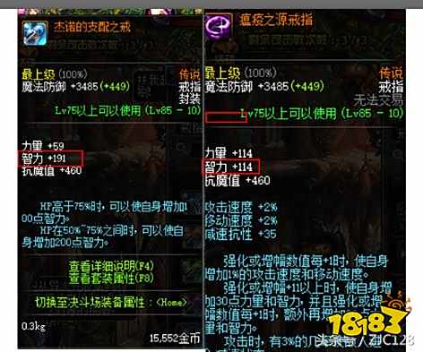 相比较之下耀之荣下装所增加的智力值要比巨斧洛克下装的智力值要高很多,所以可以选择一下耀之荣下装,用来增加智力值