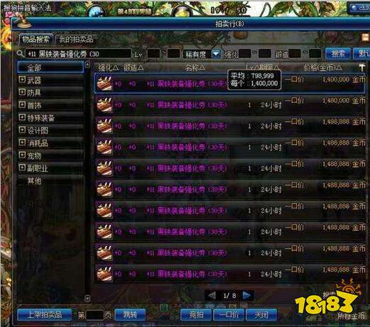大家都知道在10月18号更新后,游戏中上线了强化活动,这个活动的出现导致很多强化卷都暴涨,从+7黄金强化卷,到+12黑铁强化卷,都有很大的变化,+7黄金强化卷在没更新活动之前,只能卖到70万左右,但更新强化活动过后,这个卷子直接涨了一倍,跨五最高卖到了160万,而其他的铂金钻石卷子涨幅都差不多,就连11黑铁强化卷都涨了一倍,可见这次商人在游戏中赚了不少。