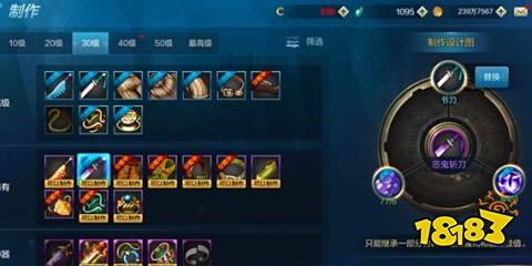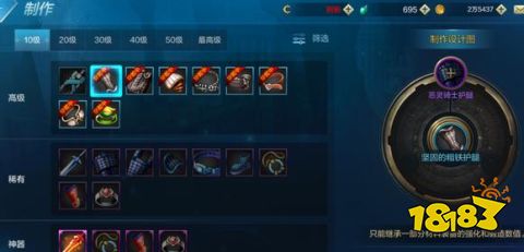如下图所示,在完成了与诺顿交谈的任务之后,主界面的右下角便会多出一个“制作”图标,进入这一功能后就能看到分为三个品级的装备体系:高级、稀有、神器。这一制作系统的核心机制,是通过消耗一定的材料,从低品级装备向高品级装备升级。