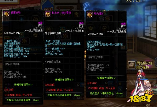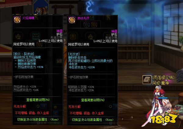 火焰海啸,从名字上来说,你就感觉很霸气,其实,这是对应修罗的大火,发动时有烈焰海啸触发追踪。波动无双护石,吸附敌人范围增加,删除了斩击。