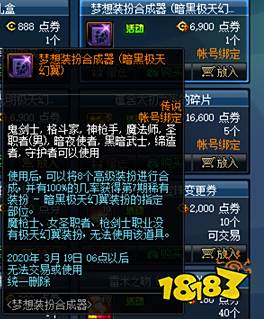 大家期待的梦想装扮合成器回归啦!使用任意8件高级时装即可百分之百合成一件绝版天空。正逢新春礼包的时装可以交易,成本大大降低,现在这个时间搞齐一套追忆简直不要再简单。所以,想要追忆这套天空的伙伴,还在等什么呢?