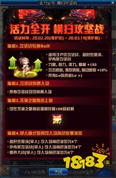 为了迎战100级版本,团本方面也放出各种福利!一是在活动期间,所有参加团本的勇士将享受到一个四维+150、三速+10%、所有技能等级+1的专享Buff,为我们攻坚团本提供了更好的助力。二是在此期间,所有团本均可以免费进入,也能为我们节省一点时空石。