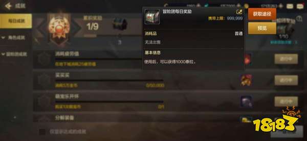 1、每日成就,当我们完成10个就能得到一个内含1000点泰拉的礼盒,每天一个账号最多能得到3个礼盒,也就是3000泰拉,因此小伙伴们在最开始的时候可以多建几个角色账号,将每日成就的泰拉奖励都拿到。