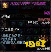 每个角色都有可以装备四个守护珠的孔位,其中一个孔位是装备7属强的玲珑之光守护珠,剩余三个孔位可以装备物理暴击率、攻击速度和移动速度的守护珠。