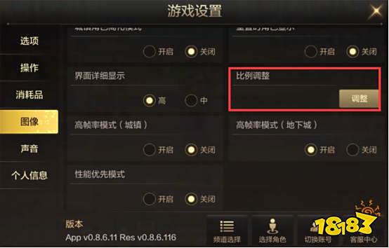 没关系,还是打开设置界面,我们跳到操作设置,还是在图像设置找到比例调整,就能自由的改变游戏比例了。