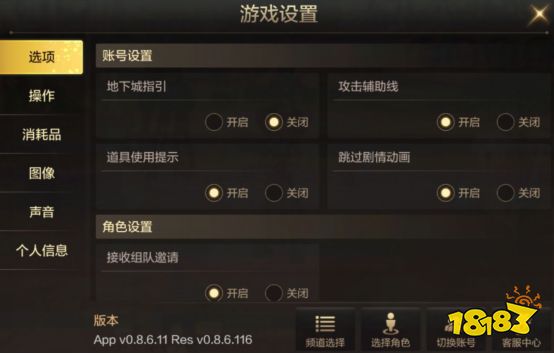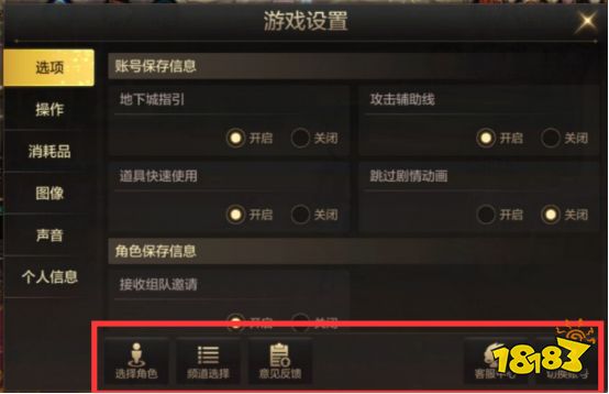 最后不知道冒险家们有没有发现选择角色和频道选择的选项呢?