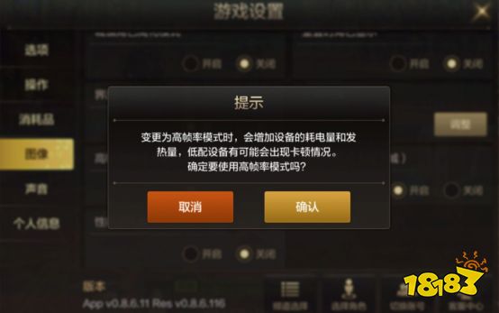 在打开高帧模式的情况下,对应的城镇或地下城画质将极大提升,但电池耗电量和发热程度都会有一定的提升,如手机有卡顿,可以优先关闭这项功能。