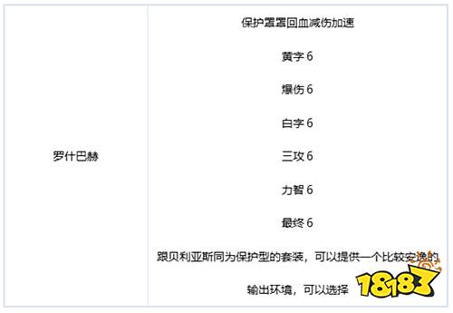 【罗什巴赫】:伤害100%,罩子,加移速,减伤,回血