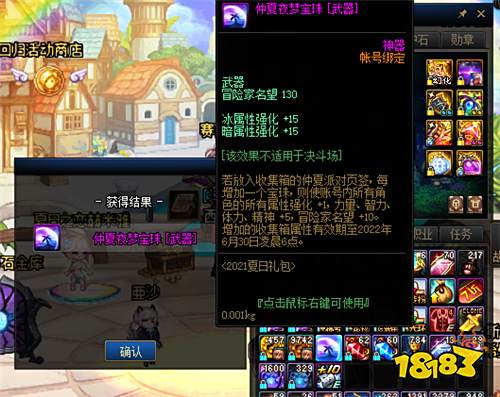 殊不知损失惨重,多花了冤枉金币,夏日收集箱宝珠,比拍卖行神器卡划算。为何这么说?来看一下夏日收集箱宝珠,由于属性比春节少一半,单个拍卖行神器自选380W金币,并不是太过于昂贵。且仲夏夜梦宝珠【武器】系列,冰暗属性强化+15,冒险家名望值130点,比“灵媒埃里克”强太多!