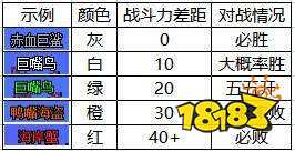 分为普通怪物和头目怪物,与怪物战斗的结果受战斗力和怪物强度影响,发现宝物3后,与怪物战斗获胜几率永久+5%。随着战斗力的上升,怪物的名字颜色也会跟着变化,具体可查看下图。