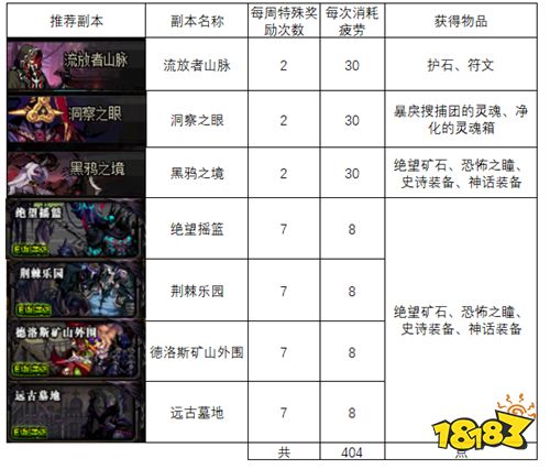 该类副本笔者是非常推荐刷的,并且统计了每周在该类副本上耗费的疲劳为404点。黑钻用户每周疲劳为188X7=1,316点疲劳,普通用户每周疲劳为156*7=1,092点,扣去404点后分别为912点和688点疲劳。