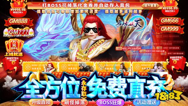 ★1000%超速打金版,全方位免费首充,挂机、boss、活动均产出直充币,瞬间帮你填满直充钱包,永久存入并随时可取出,无上限。