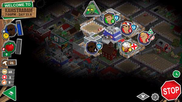 玩过1和2的玩家应该不会对游戏的玩法不会陌生,游戏中每个人物都有领导、攻击、建筑、搜索、和研究五个技能,在随机的地图中,每一个方块就是一个建筑,不同的建筑有着不同的功能,你需要扫荡僵尸、收集物资、吸纳幸存者、建设建筑等等,努力生存与僵尸对抗。