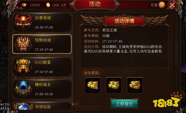 怪物攻城这个活动必须参加,因为这个活动每天三次,而且每次送的元宝都超级多啊,所以这个活动能够获得的元宝是最多的,没有之一!!!