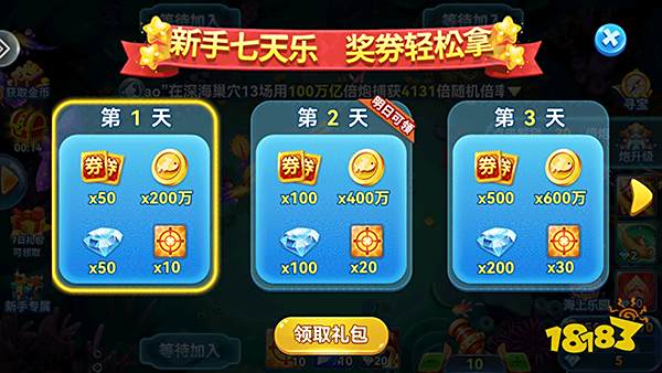 1、进入捕鱼季最新版本游戏后就可以领取新手礼包。