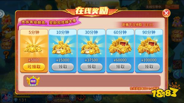 5、在线时间越久可以领取更多的金币。