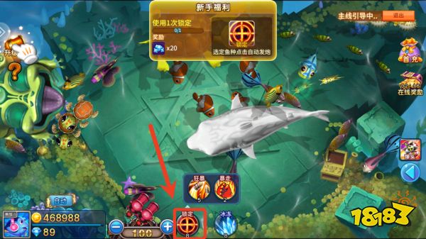 2、使用下方技能[锁定]可以自动选中鱼种进行自动发泡。