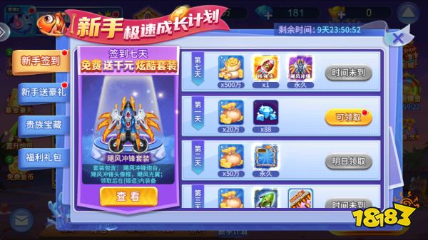 6、新手签到七天可以免费领取炫酷套装。