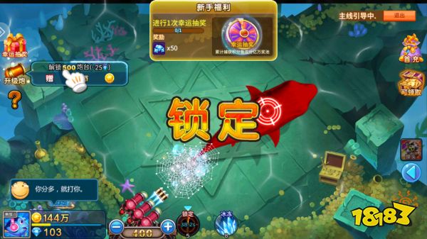 1、点击屏幕可以向鱼开炮。