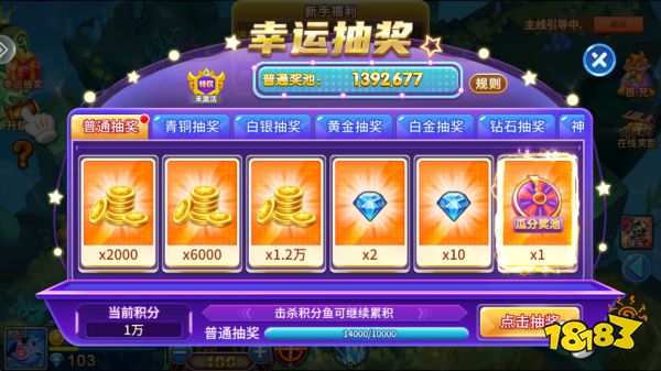 4、捕获积分鱼后可以获得随机范围的积分,积分可以进行抽奖,鱼的倍数越高,获得基础积分越多。