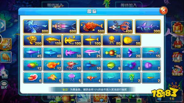 2、拿着这200金币来到新手房,就会面对着密密麻麻的鱼游来游去,对于一个资深的游戏高玩来说想要制霸游戏,先要了解游戏,打开了图鉴,了解一下鱼的分数还是很有必要的。
