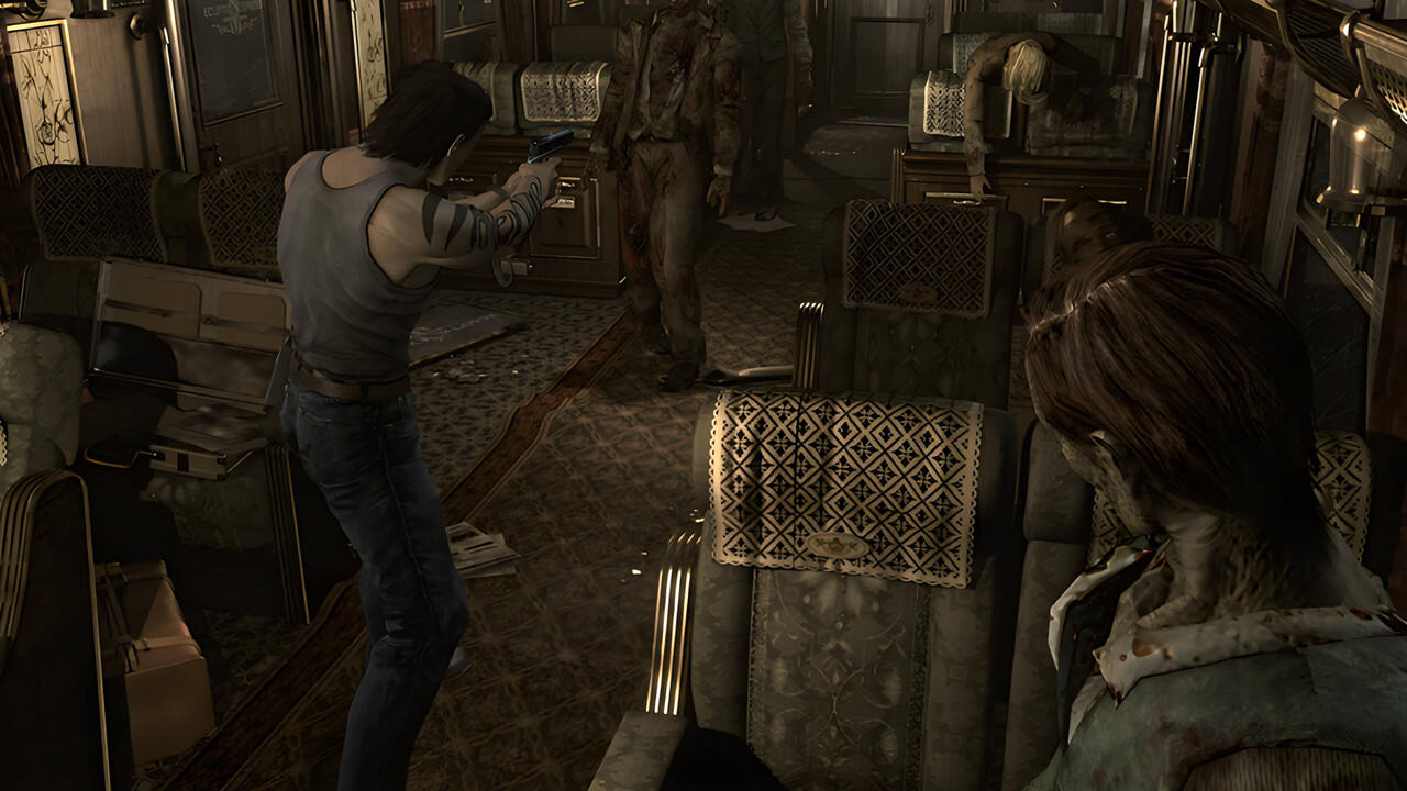 重制版将原版画面提升至1080p分辨率,角色模型、场景纹理与光影效果均经过重新制作。动态光源系统让阴暗的列车车厢与洋馆走廊更具压迫感,5.1声道音效进一步强化了恐怖氛围,脚步声、敌人低吼与机关声响都更加真实立体。