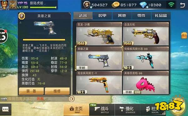 英雄之翼打破了沙漠之鹰射速慢的传统理念,升级至38后射速堪比三连发,无论PVP模式还是PVE模式,都可以轻松应对。但也因为射速快,连发时影响手枪稳定性的缺点。