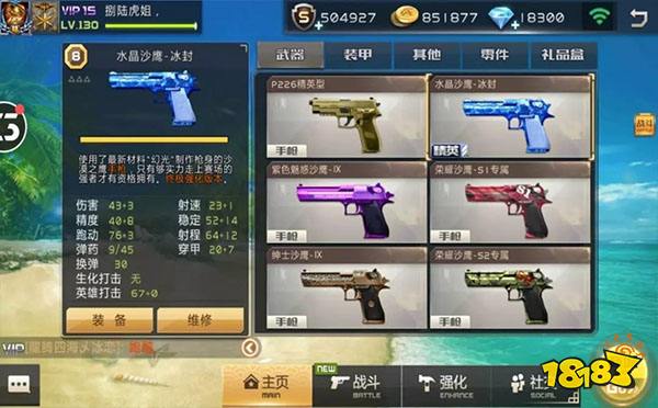 说到沙漠之鹰,水晶沙鹰莫过于全民枪战最早期手枪中经典中的经典,46的高伤害,加上9发子弹的载弹量,在对敌进行补杀时,可以轻松击毙残血敌人。