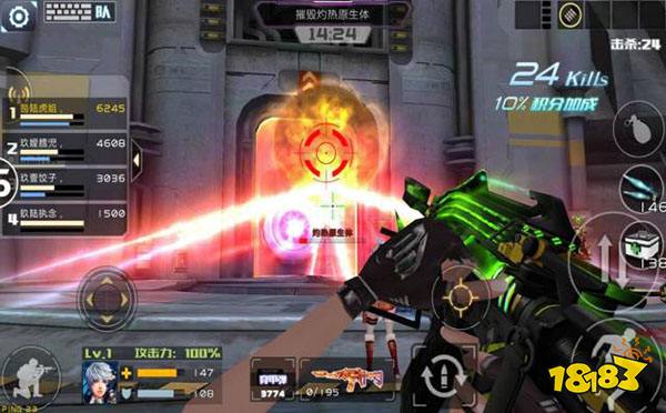 破坏了“灼热原生体”后,基地会空降一枚核融电池,核融电池会沿着电磁轨道缓慢移动,此时怪物会从通道冲出对其进行攻击。刷分的玩家尽量全数击杀“金蜘蛛”,当“金蜘蛛”刷出时,不要马上击杀,让“金蜘蛛”走到电池处,这样会有充足的时间击杀。需要一个队友进行助攻,建议助攻的时候,帮助刷分的队员打半个基数的子弹。其他队友掩护核融电池。