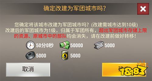 要将普通城市改建为军团城市,首先需要满足两个基本条件: