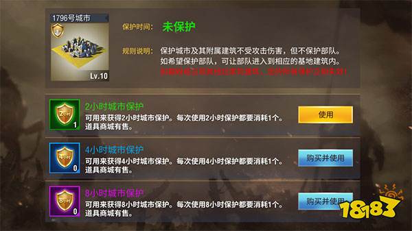 保护功能是为城市开启的一种防护措施,它可以保护城市建筑不受外来攻击。