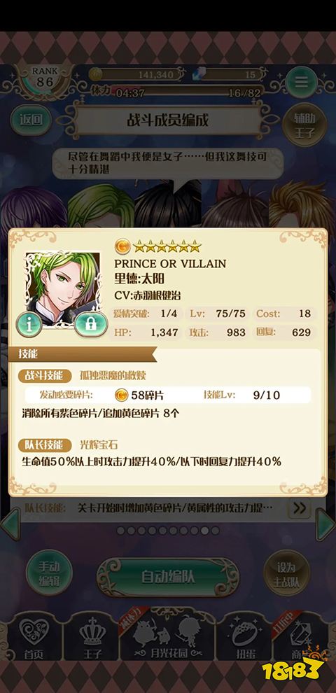 理想的队伍配置应该是六个王子和两个治疗角色。