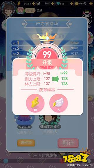 美容院是提升角色颜值的地方,玩家可以通过收集五官、头发、肤色的碎片来增加颜值。在同等级的套装PK中,颜值高的一方将获胜。在旅行关卡中,颜值越高,加分也越多,因此颜值在搭配大赛和旅行关卡中扮演着重要角色。(目前我的颜值大约为3W6)