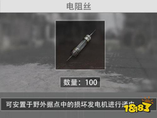 电阻丝在物资箱、补给箱、工具箱、军火箱等地点刷新,是启动发电机的重要材料。