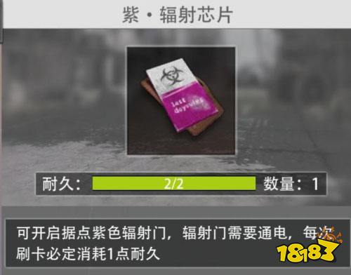 辐射芯片分为绿色、蓝色和紫色三种,绿色芯片在木屋、熊洞、超市、加油站、楼梯房顶等地方高频刷新;蓝色芯片仅在绿色芯片所在的房屋内刷新;紫色芯片则严格限定于蓝色芯片房间内产出。芯片的稀有程度越高,其位置越接近末世的核心秘密。